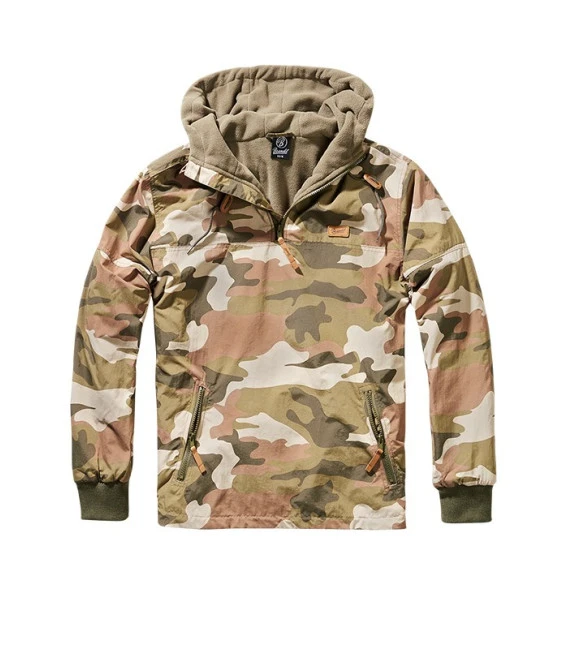 Coupe vent déperlant doublure en polaire glissière latérale extra-longue poches zippées poignets côtelés capuche avec cordon Patch en cuir Brandit sur la poitrine Composition : 100% nylon, doublure: 100% polyester, bracelet: 80% polyacrylique, 20% polyester