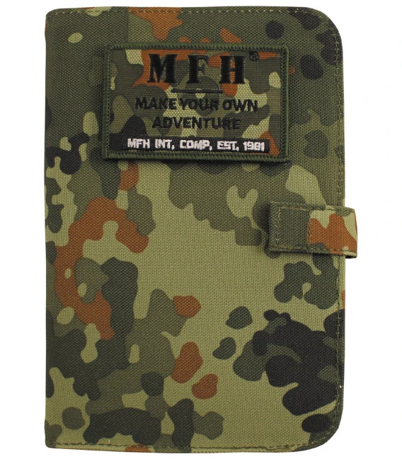 Fermeture velcro latérale Surface velcro à l’avant env. 8 x 5 cm et amovible « MFH »- Patch à l’intérieur 6 poches d’insertion et 2 porte-crayons dimensions: env. 20 x 14 x 3,5 cm Matériel: 100 % polyester