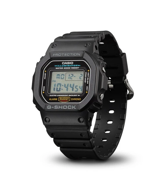 Classique et intemporelle, la montre-bracelet numérique G-SHOCK The Origin DW-5600E est robuste grâce à son boîtier en résine, son cadran en verre minéral et son bracelet en résine, un matériau durable et souple.
