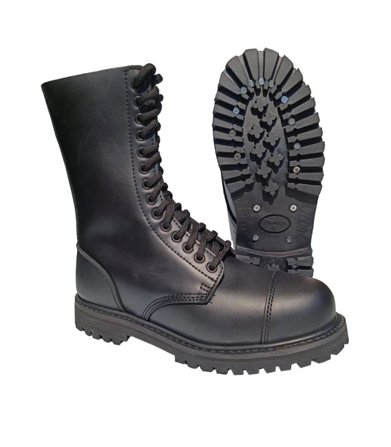 Bottes rangers en cuir homme ou femme avec embout en acier et semelles antidérapantes.