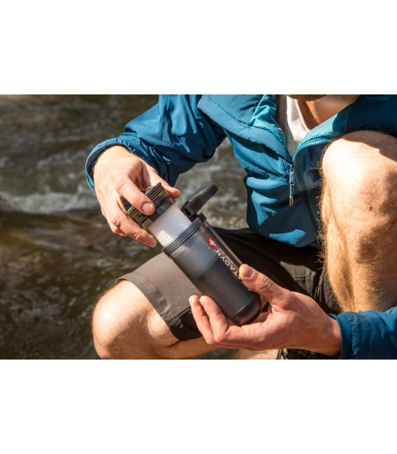 L’eau potable est primordiale lors d’opérations extérieures. Quelque que soit le lieu de vos déplacements, c’est maintenant possible grâce au Filtre à eau Katadyn « Hyper Pro » en coloris noir. Sa cartouche en fibres de verre permet d’éliminer les bactéries, les kystes de manière fiable et les sédiments tout en améliorant le le goût.