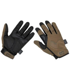 Gants tactiques solides et de haute qualité Fermeture velcro pour une adaption optimale Pouce et index rabattables Face intérieure avec rembourrage partiel et renforcement Extérieur avec protections de doigts et chevilles en caoutchouc Face intérieure en cuir synthétique Face extérieure avec élasthanne Matériel: Face intérieure:90 % Nylon, 10 % Polyurethan extérieur: 80 % Polyester, 10 % Elasthan, 10 % Nylon avec EVA rembourage et élastique partiel