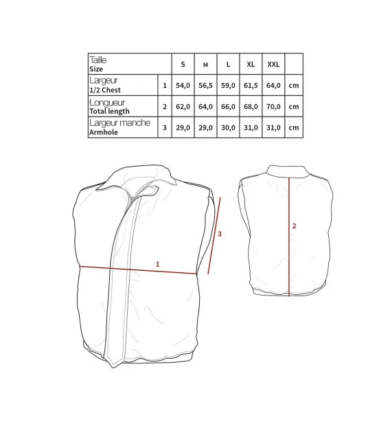- 2 Poches intérieures sur la poitrine avec fermeture éclair
