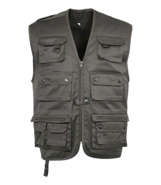 Gilet de reporter en noir avec de très belles finitions. Ce gilet est parfaitement adapté aux journalistes enquêteurs mais aussi aux soldats. Ainsi, les poches sont utiles pour ranger son matériel et les pochettes sont fermées par une fermeture à glissière ou par un auto-agrippant afin de bien maintenir les accessoires militaires.