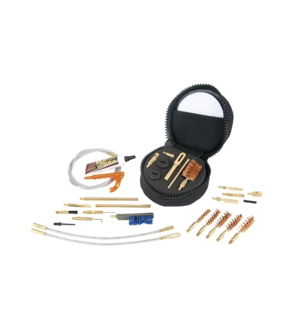 L’ensemble des outils OTIS® est la référence du nettoyage de précision de votre arme. Ce pack remplace tous les systèmes de nettoyage conventionnels. Le SOFT PACK OTIS® DELUXE, kit complet adapté aux Forces dIntervention et présenté dans une petite pochette, permet le nettoyage et lentretien des calibres .223/5.56mm – .308/7,62mm – .38/9mm – .45/11,43mm et .50/12mm Shot Gun (fusil à pompe) Les tiges de nettoyage flexibles Memory-Flex ® + les outils en laiton massif + les chiffons calibrés + les brosses spéciales et le nettoyant – lubrifiant – conservateur permettent un nettoyage rapide et professionnel des armes. Le racleur (curette) en laiton permet de nettoyer les dépôts de carbone sur des surfaces planes. Le pic coudé et droit sert à nettoyer les endroits difficiles à atteindre. Le racleur (curette) en laiton permet de nettoyer les dépôts de carbone sur des surfaces planes. Le chasse-goupille peut être utilisé pour différentes armes. La brosse -boite à culasse permet de nettoyer la glissière supérieure et les endroits difficiles à atteindre. Le pinceau fin est utilisé pour éliminer le carbone et pour lubrifier. Le pack comprend : – 1 pochette de rangement compartimentée en cordura avec zip large, résistant et permettant le port dune ceinture ou ceinturon jusquà 60 mm de haut – 1 MINI-CD dinstruction – 10 chiffons calibrés – 2 rondelles de maintien 3/4 pour chiffons calibrés – 1 flexible de 21 cm avec écouvillon fixe en laiton sur un côté – 1 flexible de 20,5 cm pour canon court – 1 flexible de 78 cm pour canon long – 1 tige filetée pour connecter 2 flexibles (canon long) – 2 barres de rallonge en laiton – 1 écouvillon en laiton pour cal .22 – 1 écouvillon en laiton pour cal .30 – 1 brosse à canon cal .5.56 – 1 brosse à canon cal .30 – 1 brosse à canon cal .38 – 1 brosse à canon cal .40 – 1 brosse à canon cal .45 – 1 brosse à canon cal .12/10 Gauge Brush – 1 brosse-boite à culasse – 1 pinceau – 1 adaptateur OTAN – 1 flacon Ultra Bore® nettoyant-lubrifiant-conservateur – 1 écouvillon dextraction (se fixe à lopposé du flexible) cal .22 – 1 écouvillon dextraction (se fixe à lopposé du flexible) cal .30 – 2 tiges T (qui passent dans le trou des écouvillons dextractions pour pouvoir tirer le flexible) – 1 curette en laiton – 1 chasse goupille en laiton – 1 pic coudé en laiton – 1 coude lumineux pour linspection du canon – 1 notice dutilisation complète en français