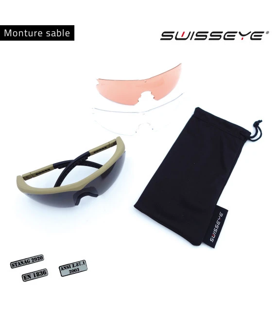 Ces lunettes balistiques Raptor Swisseye en coloris noir sont livrées avec 3 types de verres différents, un clip pour ajouter des verres correcteurs et une housse de protection. Tous les matériaux utilisés ont des propriétés incassables afin d’assurer une protection totale.
