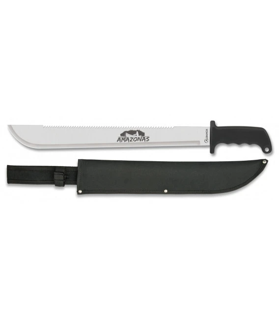 Amazonas est une machette de la marque Albainox avec une lame longue de 46,5 cm. Sa longueur totale est de 59,8 cm. La poignée est en caoutchouc. Le gros atout de ce modèle est son poids très léger avec seulement 320 grammes.