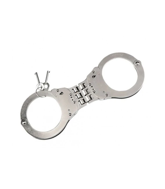 Ces Menottes à Charnières T.O.E. en coloris Gris sont des menottes fermant à clé et disposant d’une double sécurité à crans. Elles sont utilisées par les professionnels.