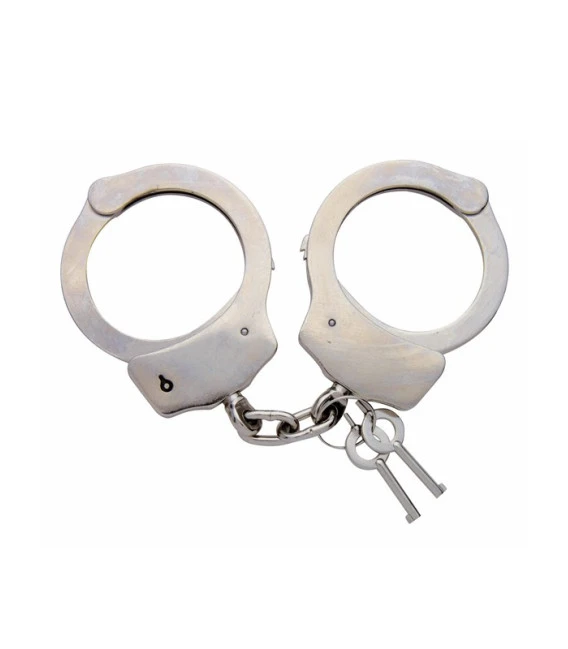 Cette paire de Menottes en plaqué nickel est une réplique du modèle utilisé par la police américaine. Elles sont livrées avec deux clés.