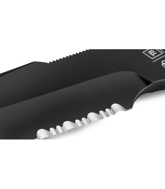 - Lame semi-crantée pleine soie en acier inoxydable Mox® revêtu de PVD