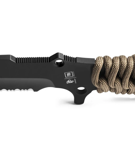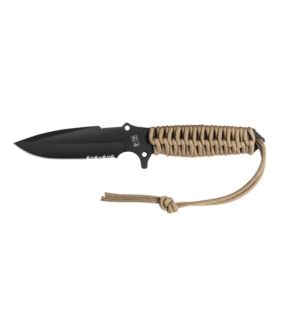- Manche en acier entouré de paracorde tan (résistance à la rupture supérieure à 250 kg)
