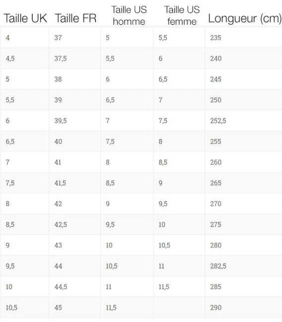 - Pointure : se référer au tableau dans les images du produit