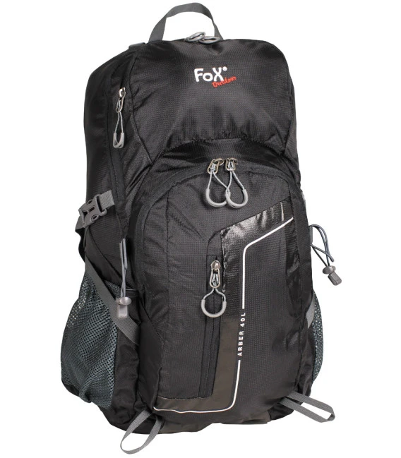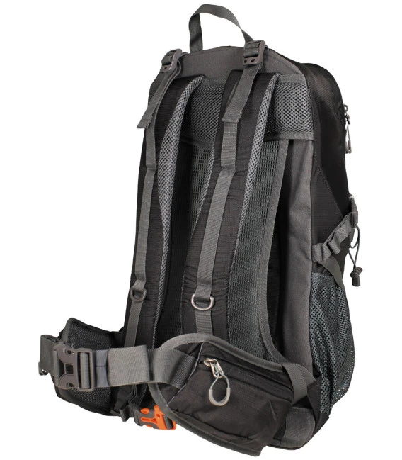 Facile sac à dos de trekking avec amovible partie de ventilation et de cadre sur le dos 1 poche rabat avec fermeture éclair à deux voies 1 poche le long de avec fermeture éclair 1 poche rabat avec fermeture éclair 2 élastiques boucles de fixation et cordon à stoppeurs Rembourré et réglable sangles à dos Réglable sangle de poitrine avec sifflet de signalisation Rembourré et réglable sangle sous-abdominale avec 2 petite poche avec fermeture éclair Poignée de transport au-dessus, 2 sangles de fixation dessous 2 poches filet et 2 sangles de compression latéral Housse anti-pluie amovible intégrée Compartiment principal avec fermeture éclair à deux voies et poche d’insertion tout fermeture éclair avec extracteur à anneaux Capacité: env. 40 l Dimensions: env. 52 x 34 x 23 cm Poids: env. 1,1 kg Matériel: