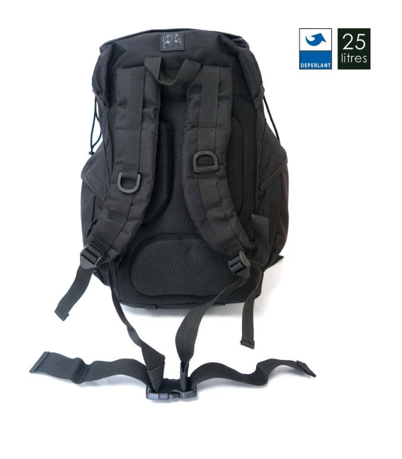 Le sac à dos ripstop 25L est en tissu déperlant, robuste et d’une capacité idéale pour les randonnées. Il comporte une sangle ventrale, des poches avec rabats pour protéger les affaires de l’eau, un rembourrage confortable dans le dos et aux bretelles ainsi qu’une maille qui évacue efficacement la transpiration pendant vos balades.