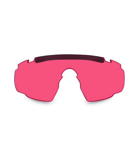 Ecran de remplacement pour modèle Saber en polycarbonate incassable Selenite avec revêtement anti-rayure Hard coating et traitement anti-buée Anti Fog coating Teinte rouge pour une augmentation des contrastes, une netteté des cibles et une amélioration de la profondeur visuelle Transmission : 15% Protection de 100% des rayons UVA / UVB